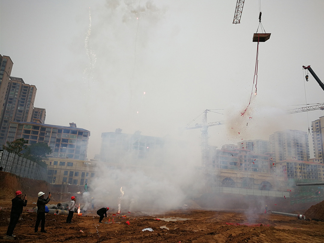 開工儀式上,項目現(xiàn)場彩旗招展、鑼鼓喧天、人聲鼎沸,數(shù)十臺機(jī)械一字排開,蓄勢待發(fā),員工列隊整齊、精神振奮。8時58分,在公司領(lǐng)導(dǎo)的支持與關(guān)注下,在全體工作人員的熱切期盼下,特變·幸福雁城一期二標(biāo)段項目正式開工。伴隨著絢麗的煙花、震耳的鞭炮聲,塔吊、挖機(jī)、打樁機(jī)轟鳴著投入生產(chǎn),標(biāo)志著該項目正式進(jìn)入施工階段。